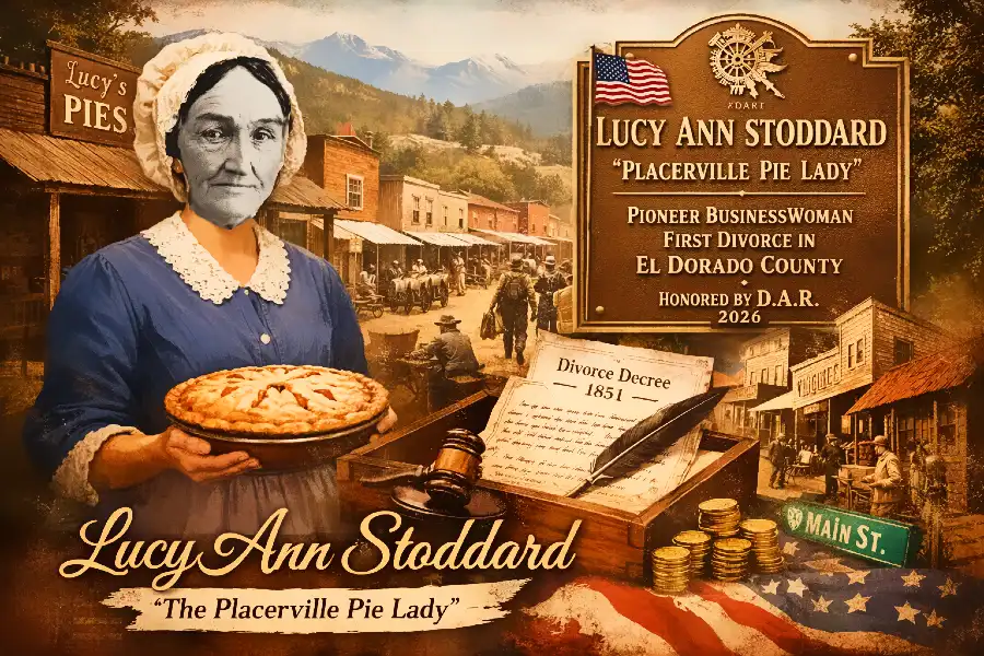 On March 11, 2026, the local chapter of the Daughters of the American Revolution unveiled a historic recognition of Lucy Ann Stoddard, widely remembered as Placerville’s legendary “Pie Lady.” Her life story blends the grit of the 1849 Gold Rush with a groundbreaking legal victory that made her the first woman to receive a divorce in El Dorado County.