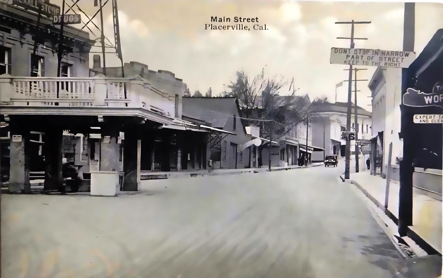 Sit back friend and let me take you on a ride, and mind the dust of the road a moment. What you behold in this old photograph is Main Street of Placerville as it appeared in the years just after the Great War—when the old frontier town was shaking hands with the modern age.