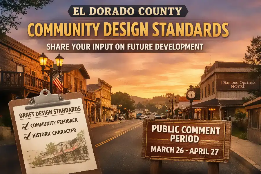PLACERVILLE, Calif. — El Dorado County Planning Division has opened a 30-day public comment period for draft design standards that will guide future development in Diamond Springs and El Dorado, officials announced Thursday.