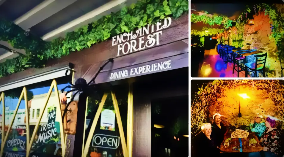 The Enchanted Forest Dining Experience is a family-owned, fantasy-themed restaurant located at 372 Main St, Placerville, CA.The concept: step into a “forest-like,” fairy/old-world vibe with whimsical décor, fairy-inspired touches, and an immersive atmosphere meant to make dining feel magical and memorable.