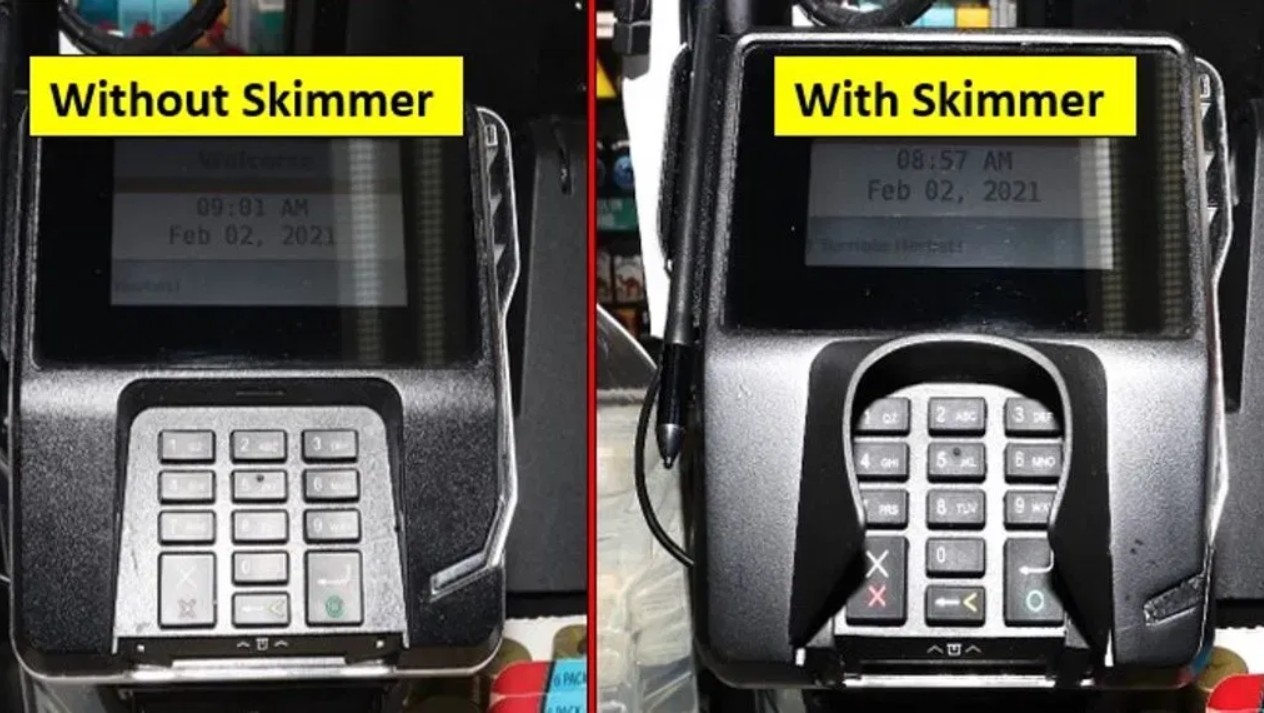 A “skimmer” is a stealthy device illicitly attached to a credit card reader, enabling criminals to surreptitiously collect personal information from unsuspecting victims.
