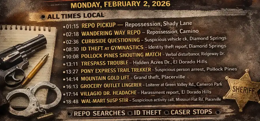 EDSO SHERIFF’S ACTIVITY BLOTTER — EL DORADO COUNTY — FEB. 2, 2026