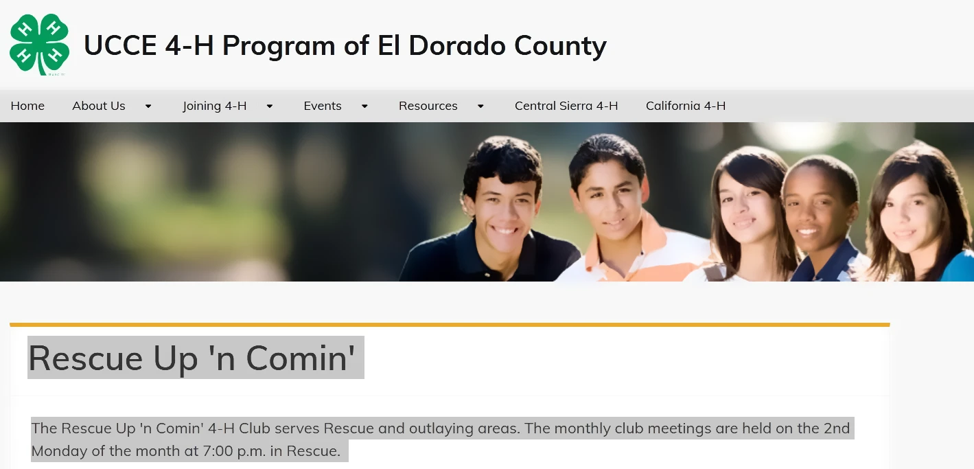 For more information, contact Ashley Oxford at rescueupncomin4h@gmail.com or visit the UCCE 4-H Program of El Dorado County’s website.