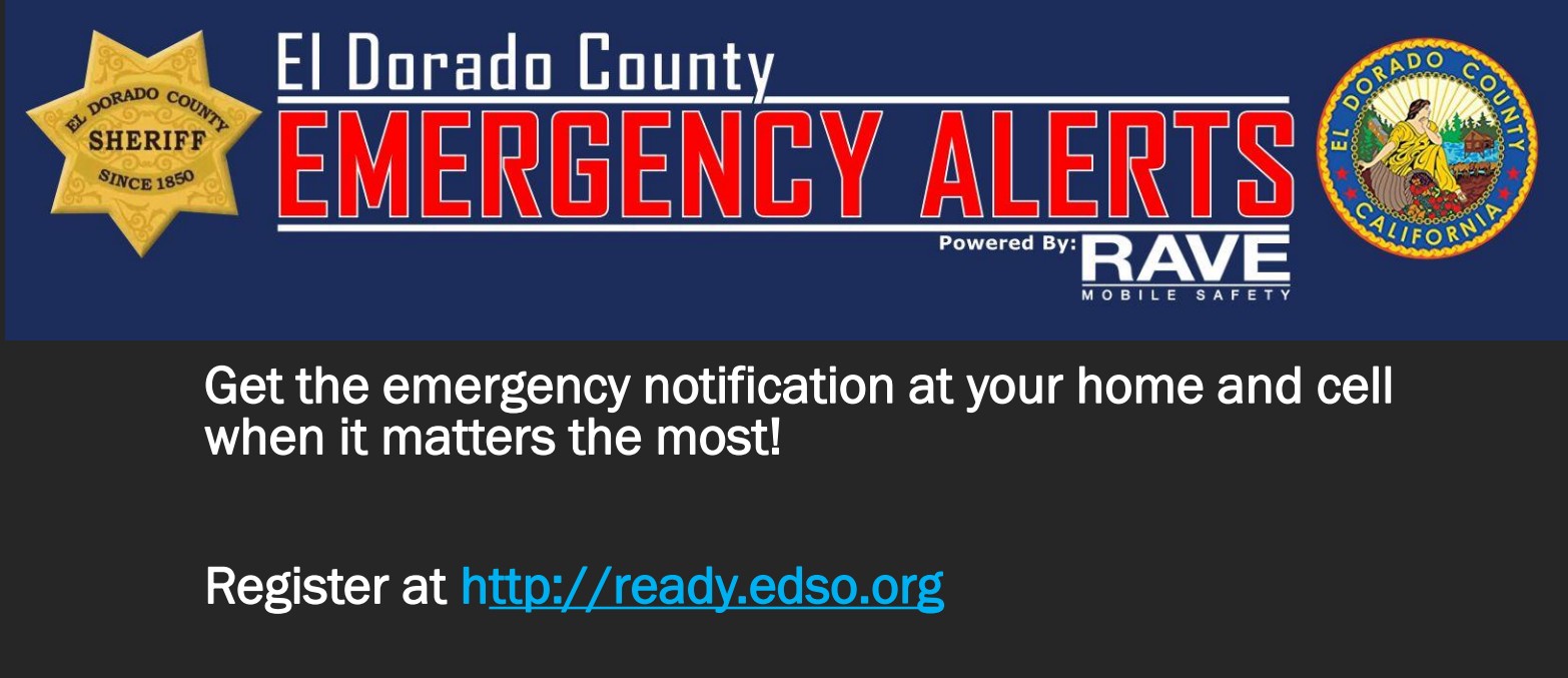 For added convenience, residents are advised to save the contact information for El Dorado County Emergency Alerts to distinguish it from potential spam communications. Telephone messages will display a Caller ID of 530-621-7595, while emails will originate from edcgov@getrave.com. Text messages will be sent from a six-digit short code, which may vary.