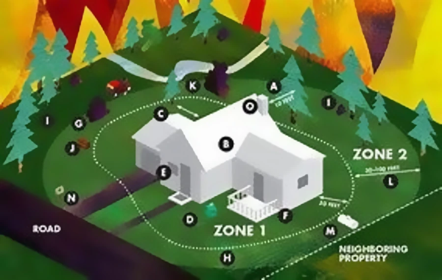 - The 100 ft. defensible space requirement around structures is state law.