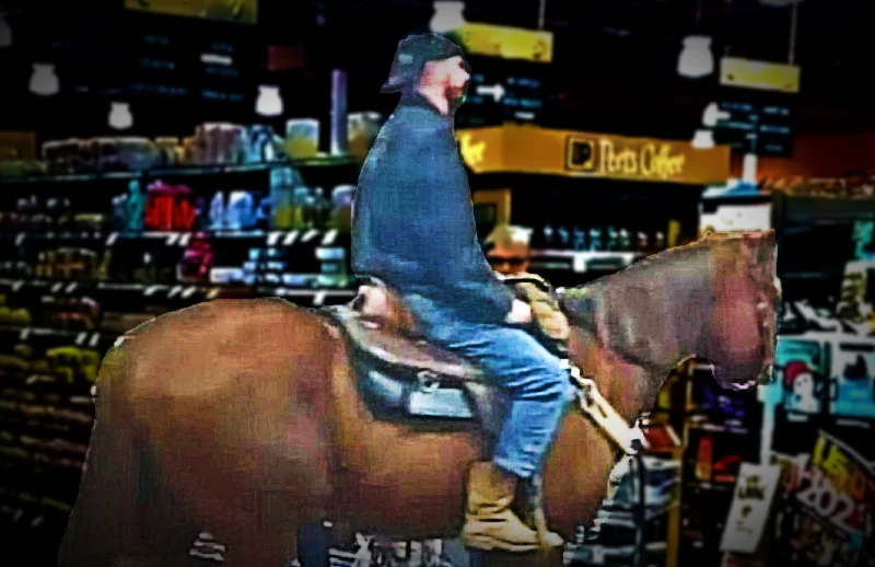 Cool, El Dorado County (Jan 2 2024) – In a quirky turn of events, the quiet town of Cool in El Dorado County witnessed a unique spectacle on New Year’s Eve as two horseback riders took a casual shopping trip through the aisles of the local Holiday Market. The entire escapade, from saddling up to self-checkout, was captured on camera, leaving both shoppers and store employees in awe.