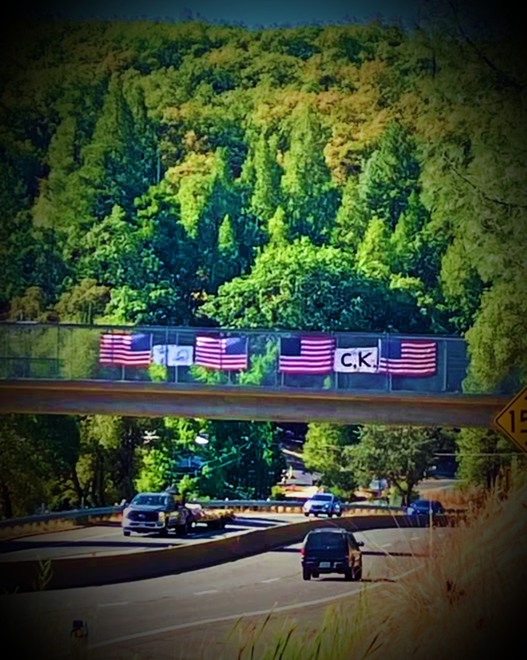 “I saw the signs that said CK, on the bridge that is above Hwy 50 near Newtown road and Smith Flat Rd. I felt honor for Charlie Kirk. Then, when I drove past again, I saw that someone had slashed and knocked them down.”