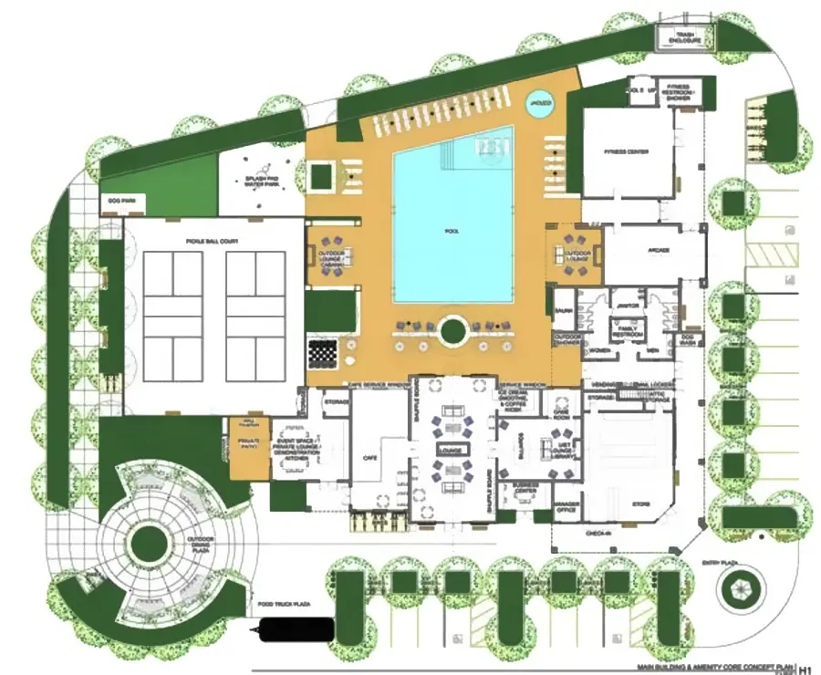 Additionally, the amenities core will feature a swimming pool and a bocce ball court, enhancing the recreational options available to visitors.