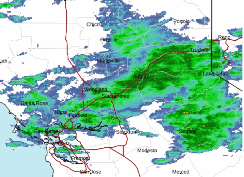 The extended forecast for the Motherlode region calls for showers and periods of rain through at least Friday, with cooler temperatures in the mid-40s to upper-50s and consistent southerly winds that could enhance runoff in saturated soils.