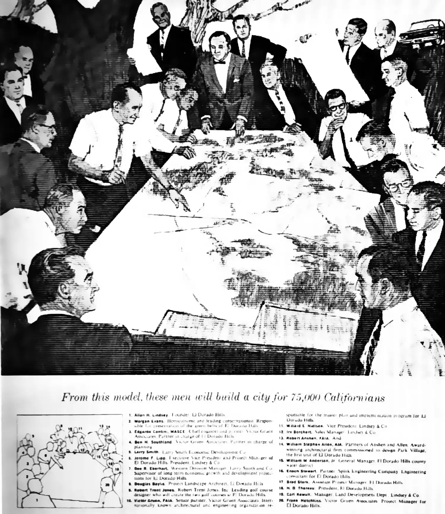 In the late 1950s, Sacramento developer Alan Lindsey envisioned a master-planned community in the rolling hills of El Dorado County. Recognizing the area’s potential, he acquired approximately 11,000 acres of ranch land by 1960, aiming to create an ideal living space for professionals, including those from the burgeoning aerospace industry.