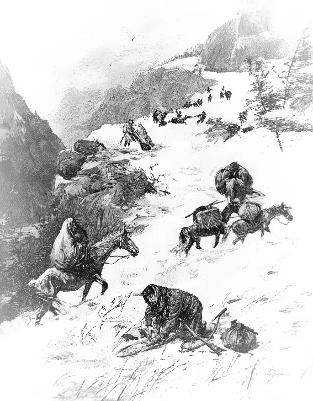 The Donner brothers, with their families, hastily constructed a brush shed in alder creek valley, six or seven miles from the lake. Their provisions were speedily consumed, and starvation with all its grim attendant horrors stared the poor immigrants in the face. Day by day, with aching hearts and paralyzed energies, they awaited, amid the beating storms of the Sierras, the dread revelation of the morrow, ‘hoping against hope’ for some welcome sign. “On the 16th day of December, 1846, a party of seventeen were enrolled to attempt the hazardous journey over the mountains, to press into the valley for relief Two returned, remaining fifteen, including Mary Graves and her sister, Mrs. Sarah Fosdick, and several other women, pressed on. The heroic C. T. Stanton and noble F. V. Graves (who left his wife and seven children at the lake to await his return) being the leaders. This was the ‘Forlorn Hope Party,’ over whose dreadful sufferings and disaster we must throw a veil. Death in the most awful form reduced the wretched company to seven —two men and five women—when suddenly tracks were discovered imprinted in the snow. ” Can any one imagine,” says Mary Graves in her recital, “what joy these foot prints gave us ?