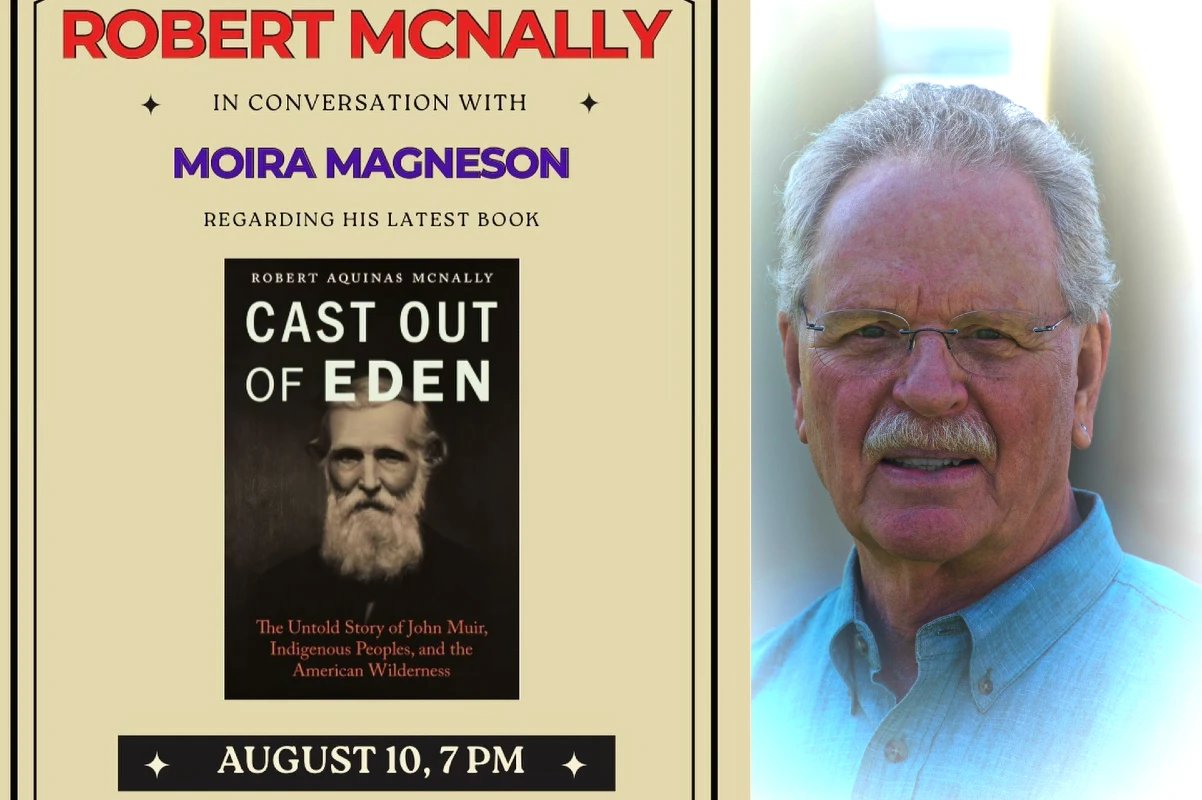 Join us this Saturday evening at the Bookery for an enlightening discussion with author Robert Aquinas McNally. Dive into the complexities of conservation legend John Muir through McNally’s latest book, “Cast Out of Eden: The Untold Story of John Muir, Indigenous Peoples, and the American Wilderness.”