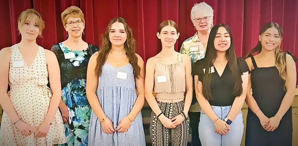 Front and center, the scholarship winners Giulietta Dean, Francesca Stickler, Kallysta Rodriguez, Dalia Lopez, and Jasmyn Loera shared their aspirations and future plans with the club members. Joining them were Scholarship Chair Betty Ackley and Club President Lisbeth Powell, who proudly introduced the young scholars to the attendees.