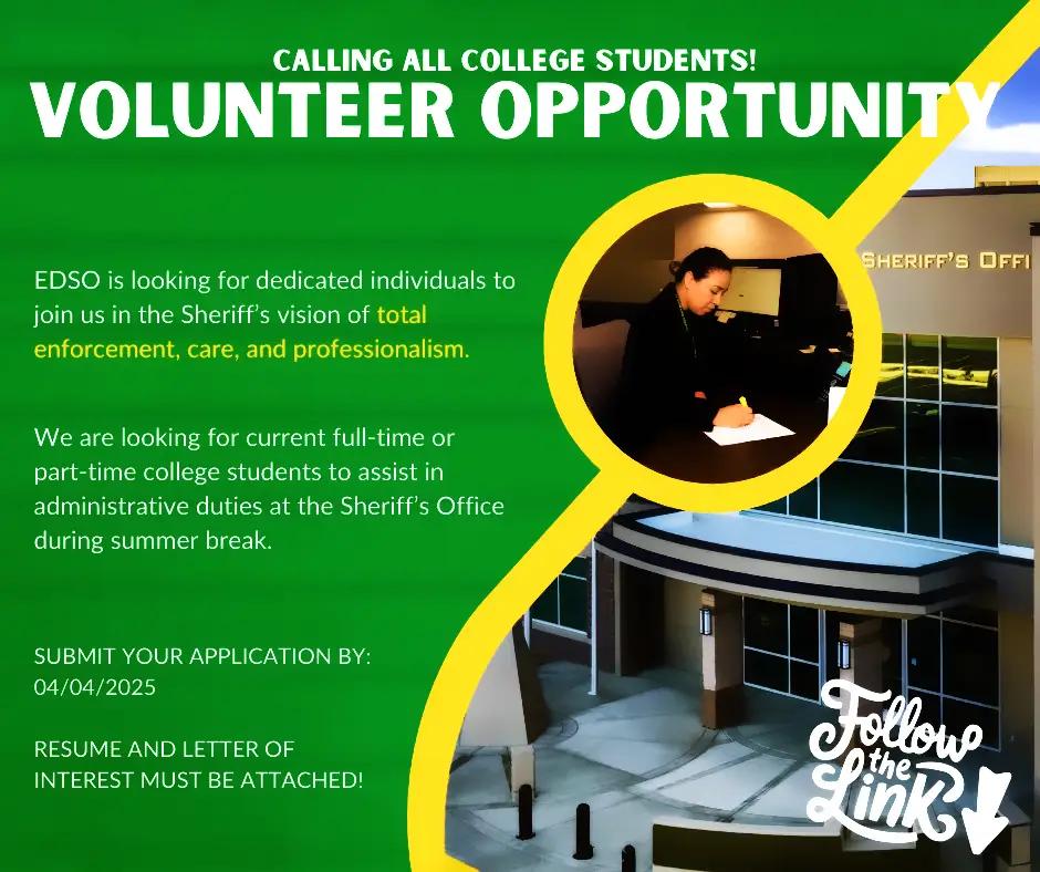 By Cris Alarcon, Placerville, Calif. (March 17, 2025) — The El Dorado County Sheriff’s Office (EDSO) is extending an invitation to students interested in gaining firsthand experience in law enforcement through its Student Intern Program this summer. This initiative provides college students with the chance to support various divisions within the Sheriff’s Office, offering invaluable insights into the operations of local law enforcement.