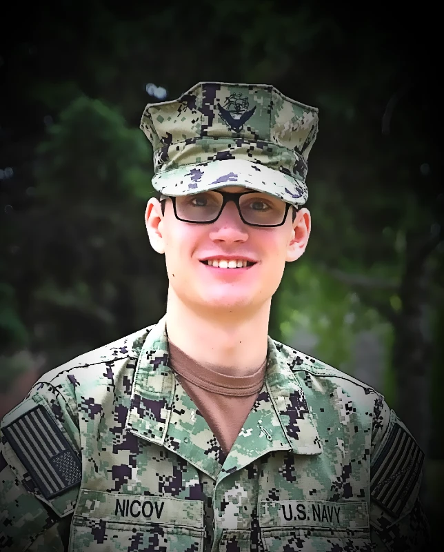 Nicov is grateful for the support that has enabled his Navy career. “I want to thank my father, Stefan Nicov,” he added. “His understanding and support of my decision really helped keep me motivated. I would not have the same outlook on life and understanding of people and the world if it wasn’t for him. I’d also like to send a shoutout to my neighbor, John, who served in the Marines. He was a big influence on my decision to join the military.”