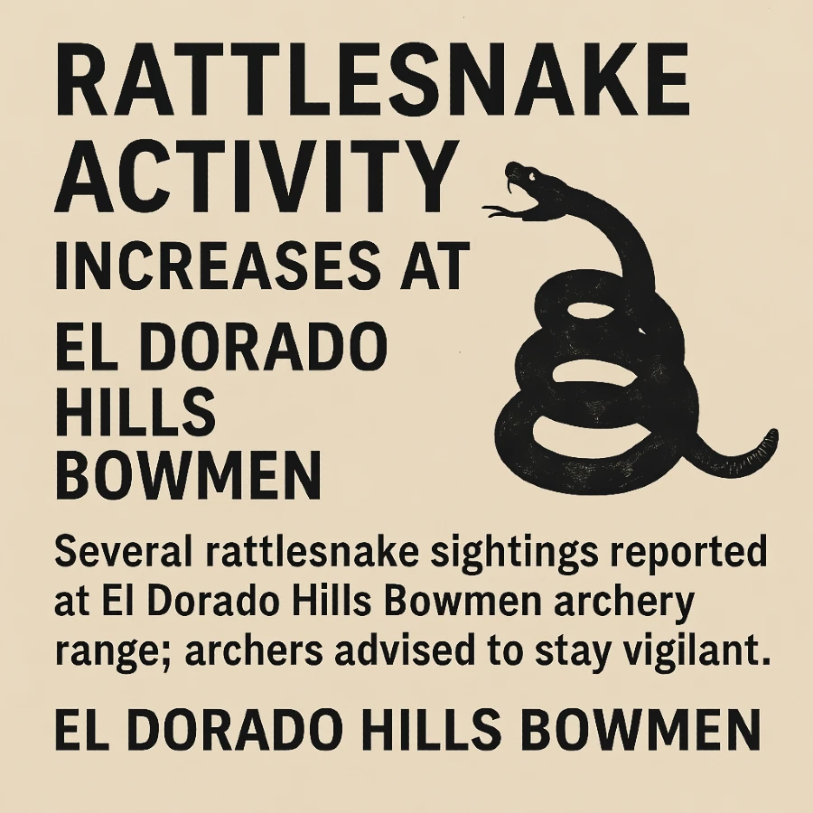 EL DORADO HILLS, Calif. — The El Dorado Hills Bowmen archery club has issued a warning to its members and visitors following multiple rattlesnake sightings at its outdoor range.
