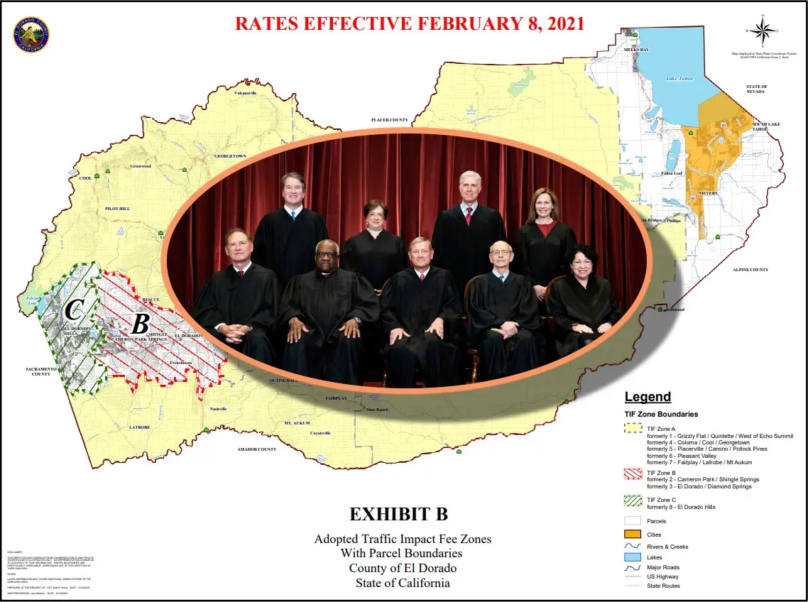 El Dorado County (January 9, 2024) – The Supreme Court displayed a keen interest in re-evaluating the rights of property owners during a hearing on Tuesday. A California property owner, George Sheetz, seemed to gain traction in his challenge against $23,420 permitting fees incurred while constructing a new house. The court indicated agreement on a narrow aspect that could overturn a California appeals court ruling. Justice Neil Gorsuch suggested a return for arguments on broader questions concerning the county fee’s permissibility. Sheetz’s case challenges El Dorado County’s Traffic Impact Mitigation Fee Program, arguing violations of constitutional tests outlined in Nollan v. California Coastal Commission and Dolan v. City of Tigard. El Dorado defends the fee as distinct from Nollan and Dolan scrutiny. The court’s deliberations signify a broader interest in balancing government regulations with property owner rights, reflecting a trend in the Supreme Court’s attention to property rights and takings cases.