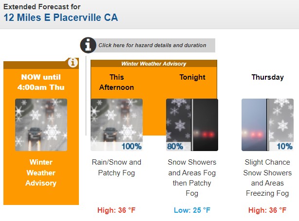 EL DORADO COUNTY, CA – February 7, 2024 — The National Weather Service issues an urgent Winter Weather Advisory for the West Slope of the Northern Sierra Nevada. With snowfall expected to persist until 4 AM PST Thursday, residents and travelers are urged to exercise caution and prepare for challenging road conditions.