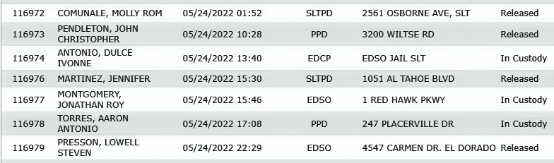 El Dorado County, CA. May 25, 2022 – In an effort to protect victim privacy this website does not provide information regarding juvenile offenders.