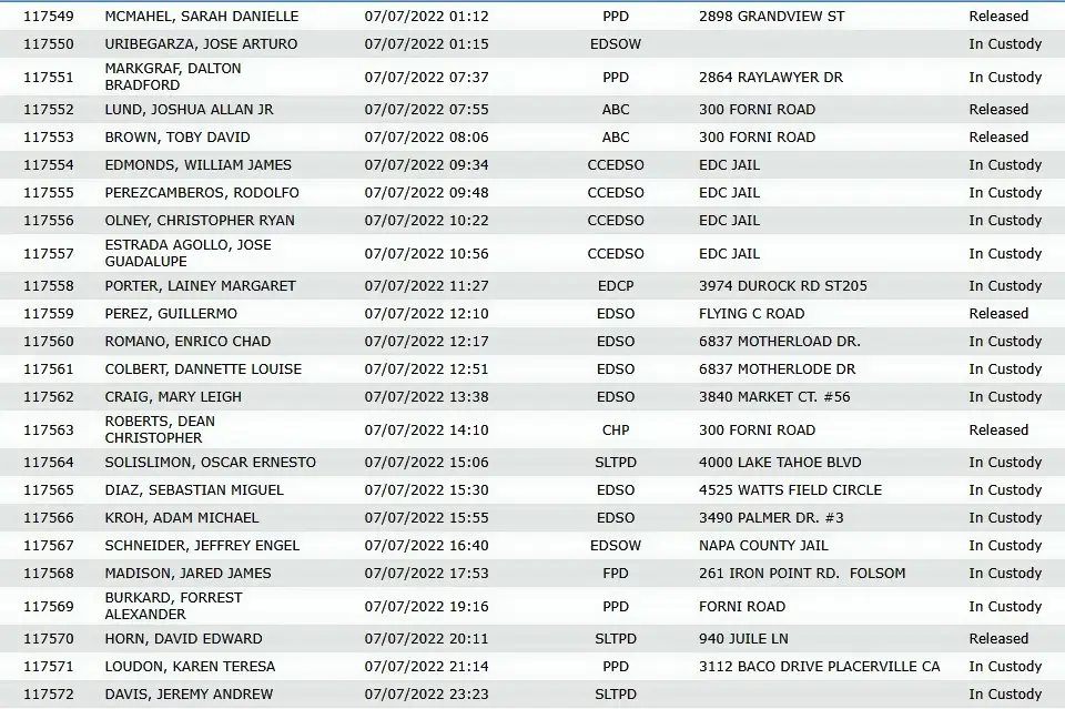 Occurred at Edso Jail Placerville on Forni Rd. , in Placerville. . Disposition: REPORT TAKEN.