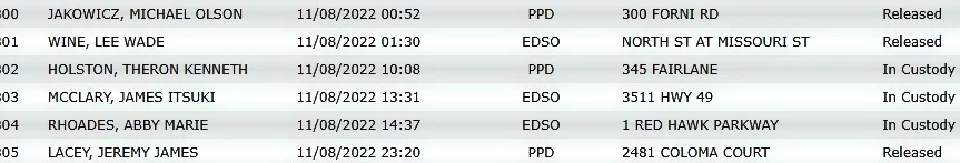 El Dorado County Sheriff (PLACERVILLE, CALIFORNIA) Nov 9