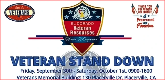 El Dorado Veterans Resources (EDVR), will be hosting a two day El Dorado Veterans Stand Down (EDVSD), September 30th through October 1st, 2022.