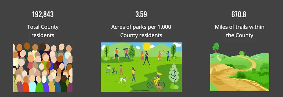 This process sets forth a 10-year vision for the county’s parks and trails system. The public, county staff, consultants and policymakers form a team that seeks to examine the county’s existing park and trails system — its strengths and challenges — as the starting point.