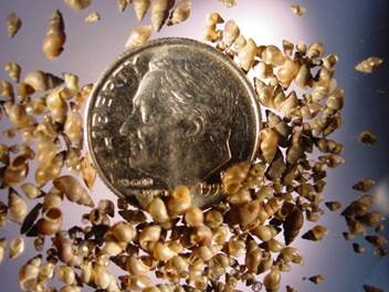“Not to be confused with highly destructive quagga and zebra mussels which have not been detected in Lake Tahoe, New Zealand mudsnails are often smaller than a grain of rice (2-6 mm). Like many AIS, without natural predators or controls, they can outcompete native species and harm ecosystem functions. First discovered in 1987 in Idaho, New Zealand mudsnails are currently found in 22 states including California and Nevada. They are able to colonize new waters quickly and due to their small size are difficult to detect. – Jeff Cowen